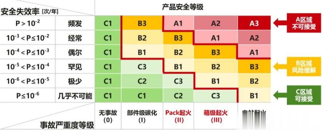 · 华为方案:借鉴核电、航天领域的风险矩阵方法论,构建了储能安全量化评估体系(A/B/C级)。其中C级代表“风险总体可控”,是目标等级。这类似于家电的“能效标签”,旨在让安全水平透明化、可比化。