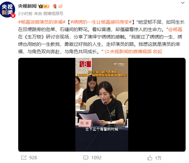研讨会现场,剧中宁绣绣扮演者演员杨幂分享了拍摄的幕后故事,并在现场感谢一位“老师”。